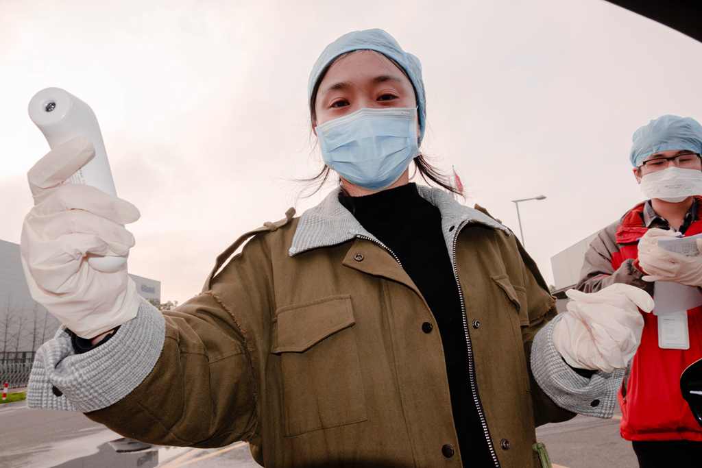 春寒料峭,冷風襲人,但全體志愿者的服務(wù)熱情不減,他們在互相保證日常生產(chǎn)工作有序進行的前提下接力奮戰(zhàn),自愿犧牲休息時間,每天“全副武裝”地為同事們測量體溫,并逐一填寫記錄。他們不畏艱難,沖鋒在前,迎著朝陽,送走落日,積極支持公司的疫情防控工作,筑牢“外防輸入、內(nèi)防擴散”防線。