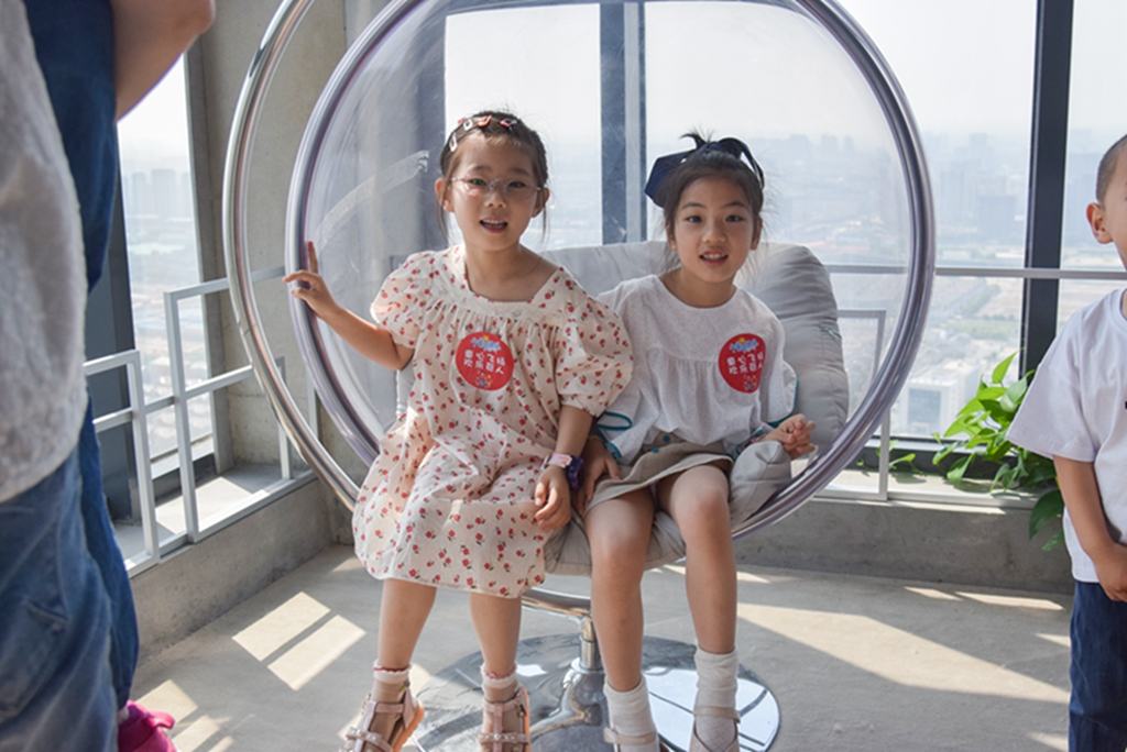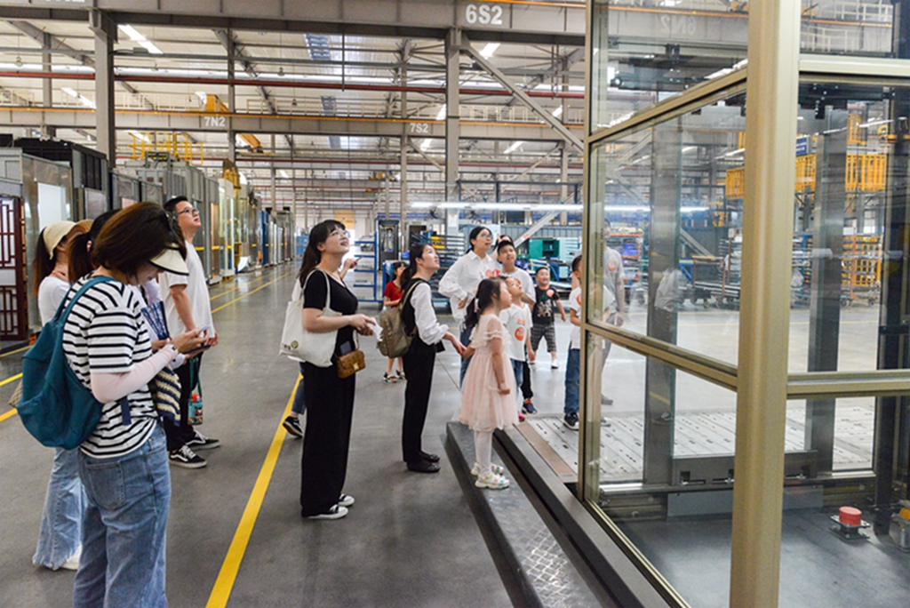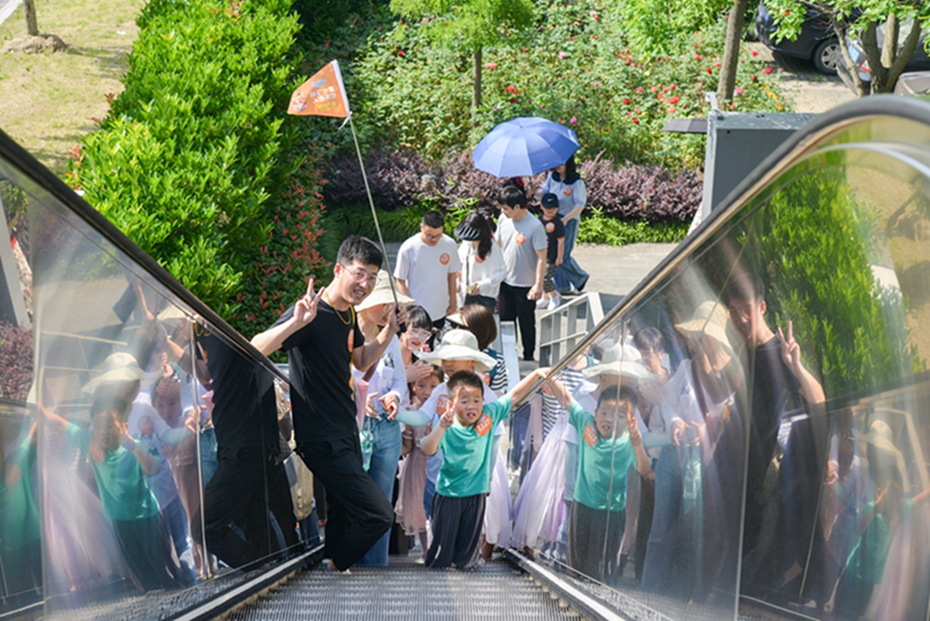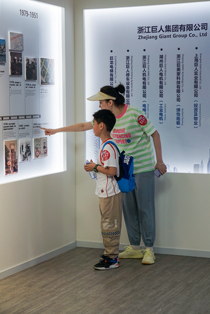 巨人企業(yè)館陳列了企業(yè)發(fā)展歷程和各業(yè)務(wù)板塊的圖文影像介紹及實(shí)物展示,這里可以跨越時間和空間,全面了解巨人的企業(yè)概況。志愿者將“巨人”的故事娓娓道來,讓孩子們感受“巨人”大家庭的溫情和父母職業(yè)的榮耀,也增加了對科學(xué)技術(shù)和人文知識的了解;寬廣敞亮的生產(chǎn)車間,一臺臺先進(jìn)設(shè)備整齊排列,呈現(xiàn)了巨人工廠的生產(chǎn)規(guī)模,志愿者帶著孩子們隨行隨講解,引得孩子們連連贊嘆;巨龍電梯試驗塔高達(dá)188米,孩子們歡呼雀躍地乘坐電梯直達(dá)觀光層,凌空遠(yuǎn)眺南潯美景,不禁心曠神怡。