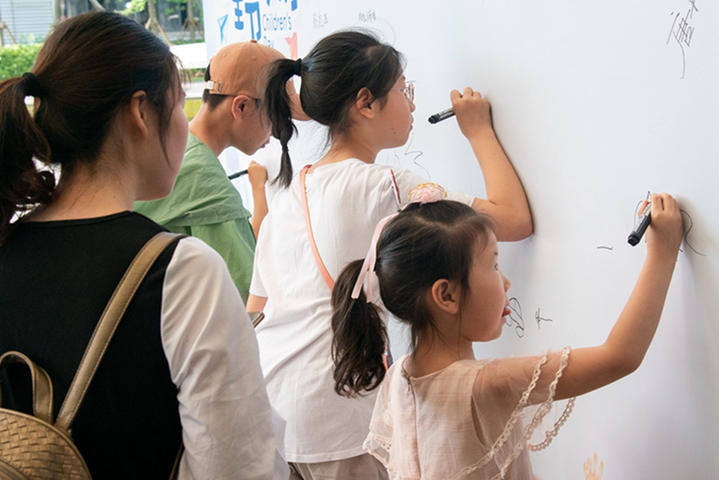 每一個家庭分別編入紅、藍(lán)、黃、綠、紫五個小組,在志愿者的引導(dǎo)下,孩子們由家長陪伴,開啟了探索“巨人”之旅。
