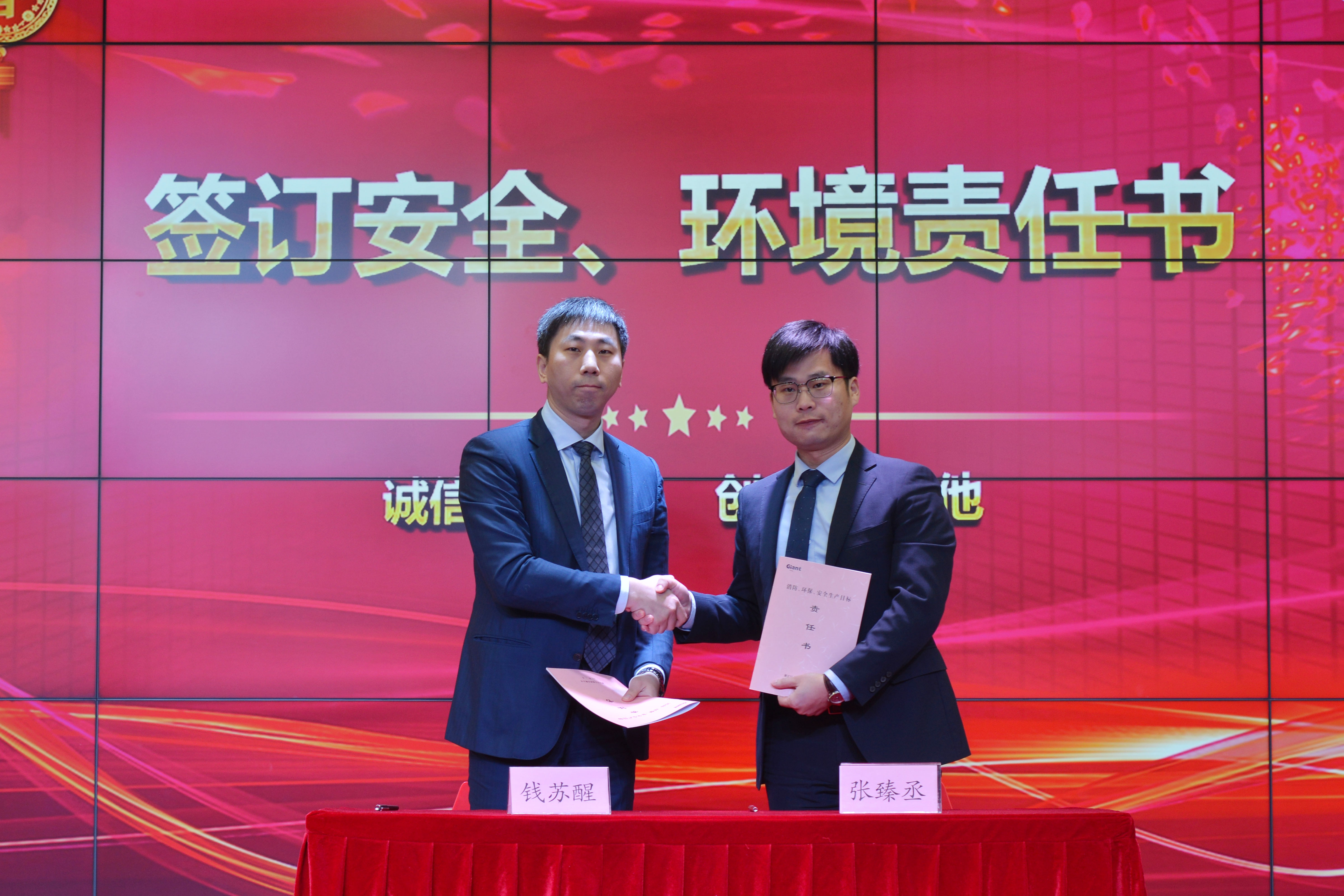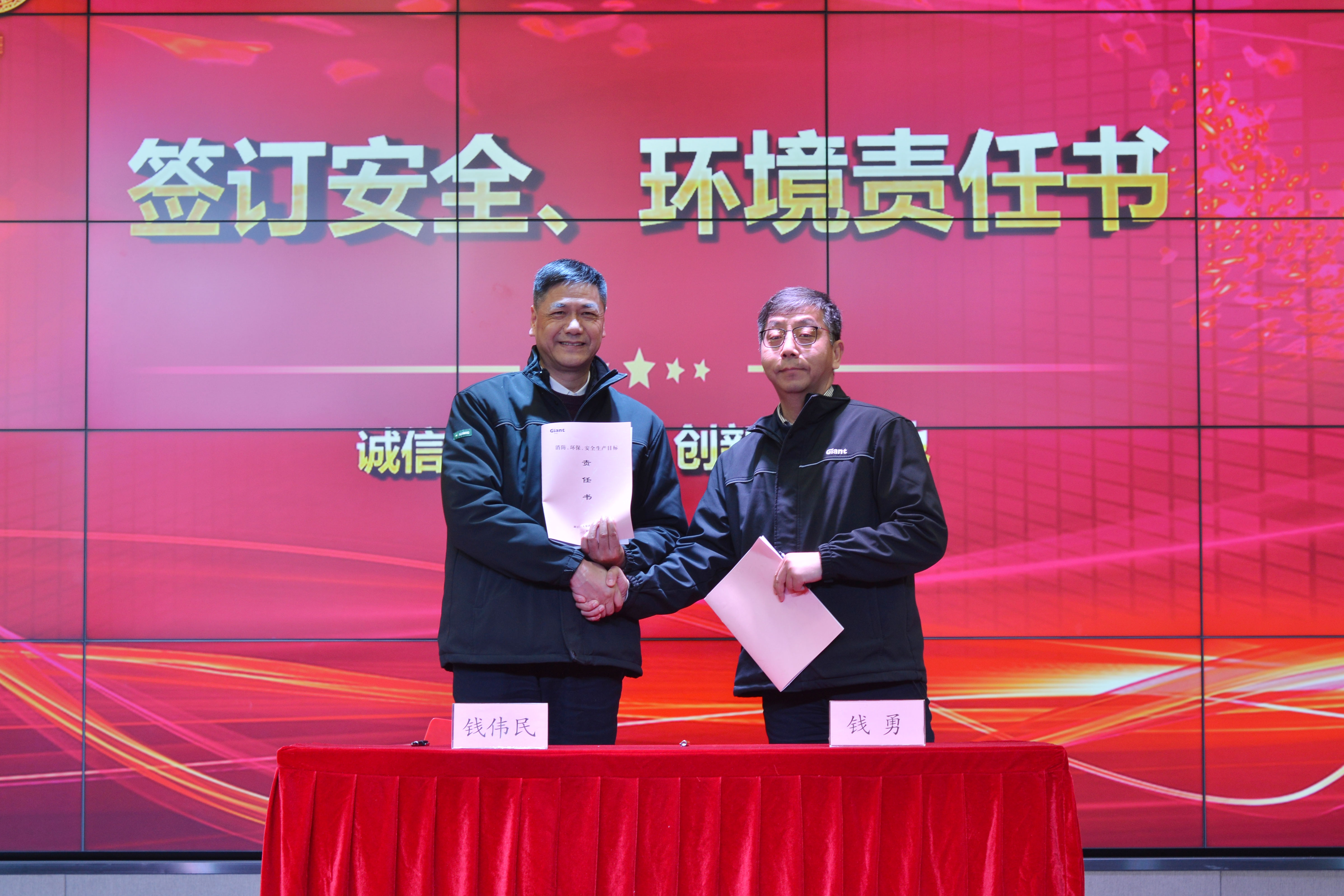 安全生產(chǎn)管理守護(hù)著員工物心幸福與生命健康以及企業(yè)社會責(zé)任,是公司頭等大事,大會舉行年度安全責(zé)任書簽訂儀式,公司副總經(jīng)理顧惠江作安全與環(huán)境教育宣講。