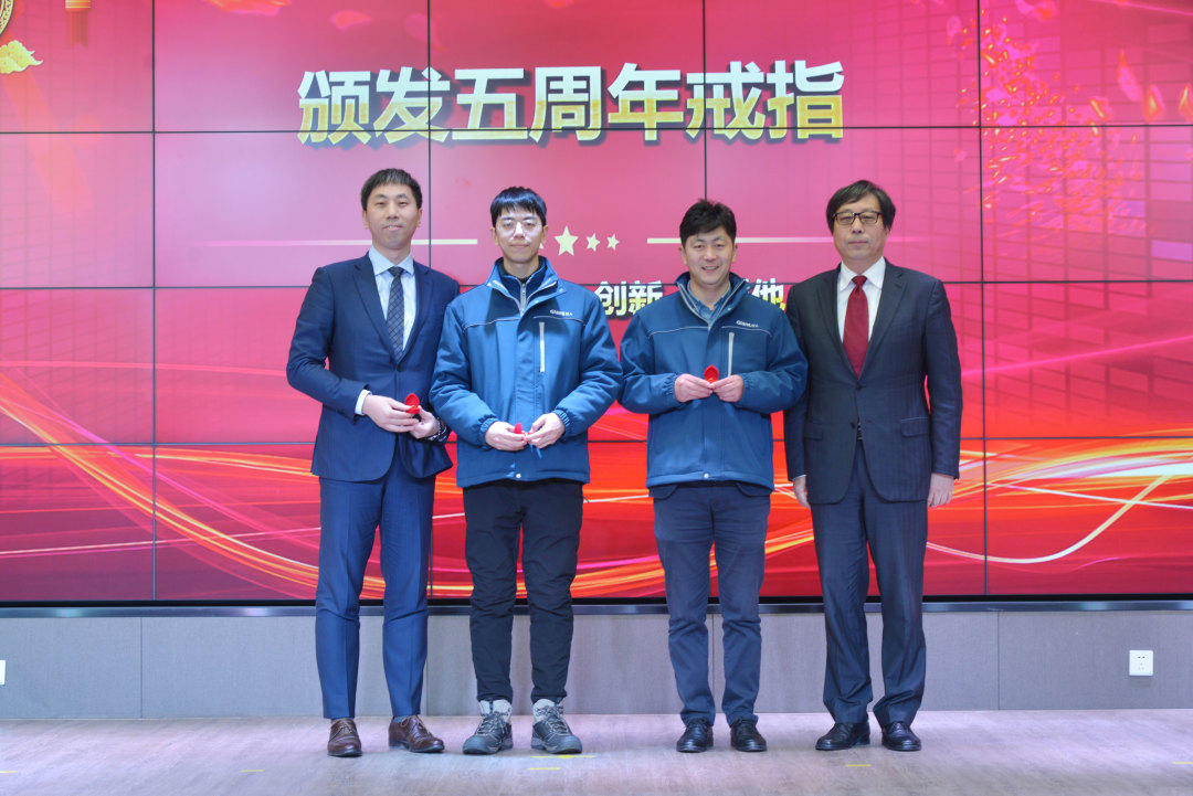 公司的進(jìn)步發(fā)展,離不開全體員工的默默奉獻(xiàn),更需要優(yōu)秀員工和先進(jìn)團(tuán)隊(duì)的努力奮斗和表率作用,大會對2021年度25名“優(yōu)秀員工”和兩個(gè)“先進(jìn)集體”進(jìn)行了表彰。遵循公司傳統(tǒng),大會為入職五周年員工頒發(fā)“紀(jì)念戒指”。