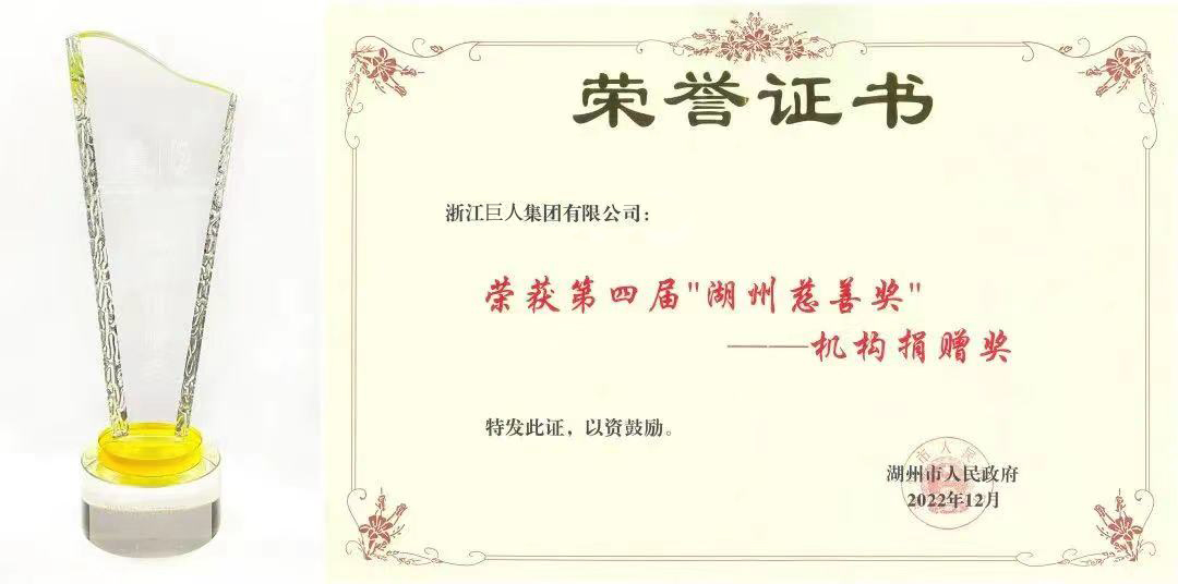 巨人集團在長期發(fā)展中,履行企業(yè)社會責任,踐行“得諸社會,還諸社會”慈善理念,扶貧濟困、光彩助學、結(jié)對共建,深耕公益慈善領(lǐng)域,得到各級政府和社會各界的認可與贊揚,相繼獲得中華慈善總會頒發(fā)的“中華慈善突出貢獻(單位)獎”、浙江省慈善獎“機構(gòu)捐贈獎”等榮譽,多次榮登湖州市慈善排行榜。