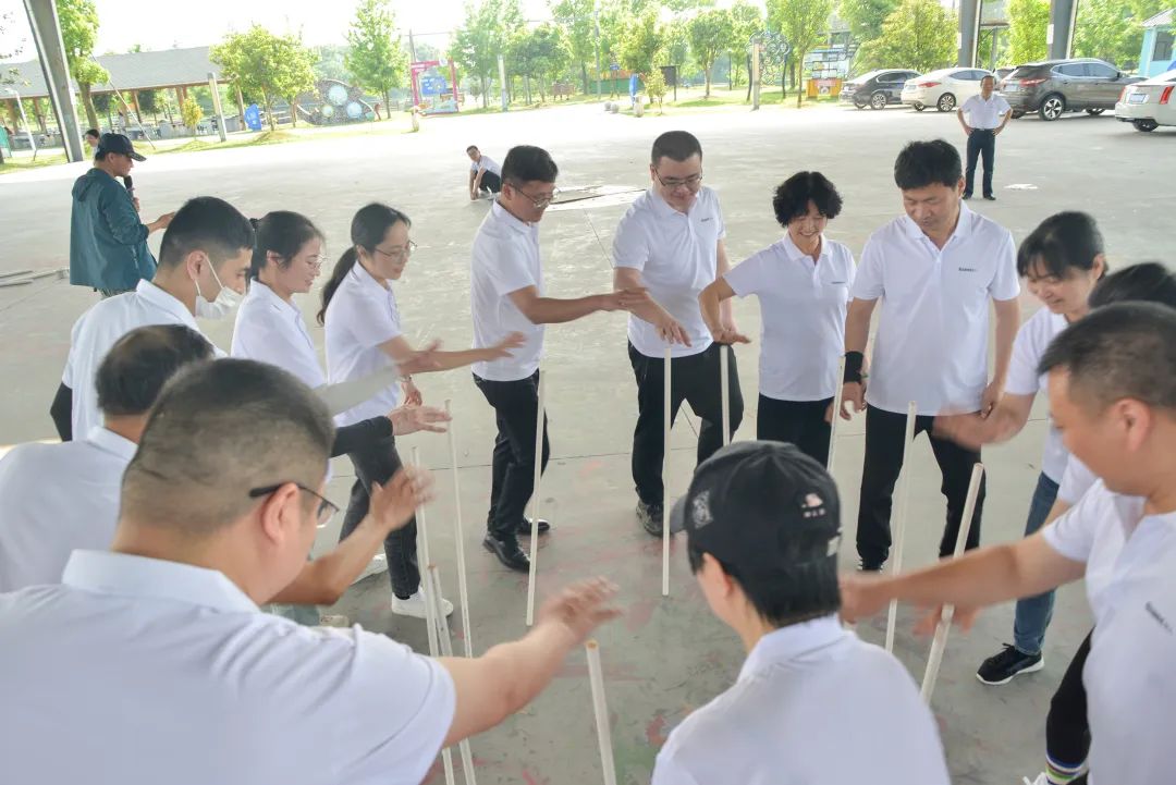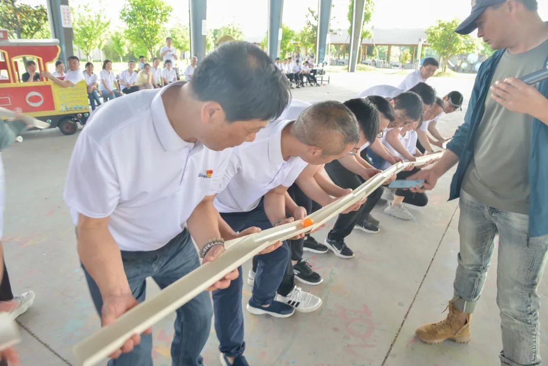 正午的烈陽擋不住員工的熱情,逐漸升溫的夏風(fēng)更是奮進(jìn)的動(dòng)力。大家隨機(jī)分成四個(gè)隊(duì)伍,每組隊(duì)員集思廣益,確定隊(duì)名和口號(hào),向著勝利奮勇進(jìn)發(fā)。“同心結(jié)”、“鼓動(dòng)人心”、“同步接力”等豐富多彩的團(tuán)隊(duì)拓展活動(dòng),激發(fā)了大家通力合作的精神、迎難而上的勇氣和彼此扶持的信任。